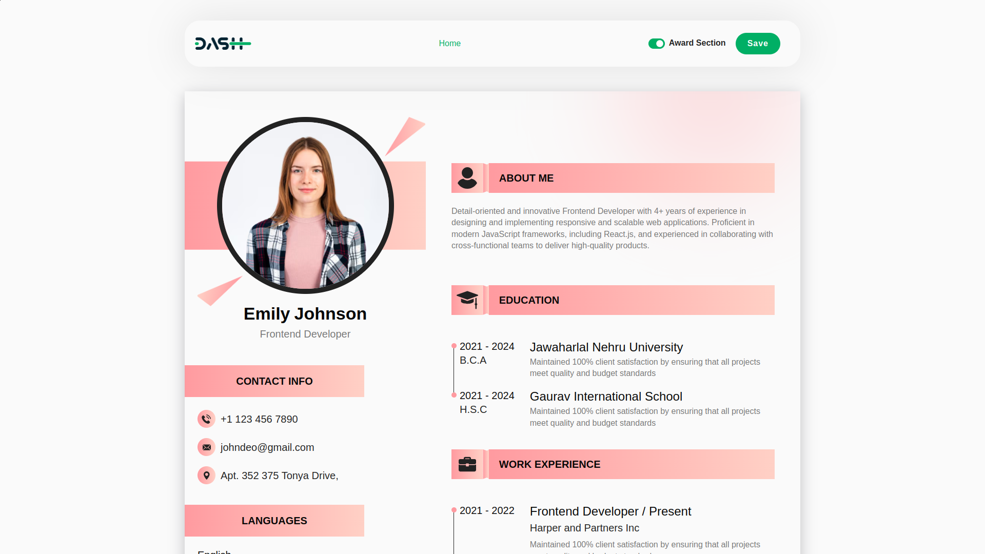 Once the resume is complete, the Resume Builder module offers multiple export options, including PDF and Word formats, ensuring compatibility with various application systems. Users can share their resumes directly from the platform, making it easy to apply for jobs or seek feedback from mentors and peers. With Dash SaaS, creating, updating, and sharing professional resumes has never been easier.